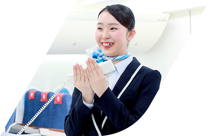 美しい立ち居振る舞いで機内サービスを行う、人気ある花形職業キャビンアテンダント(客室乗務員)を目指すコース。航空業界での就職で重視される語学力をしっかり強化し、現場で役立つサービス技術とマナーを体得します。