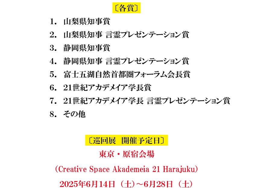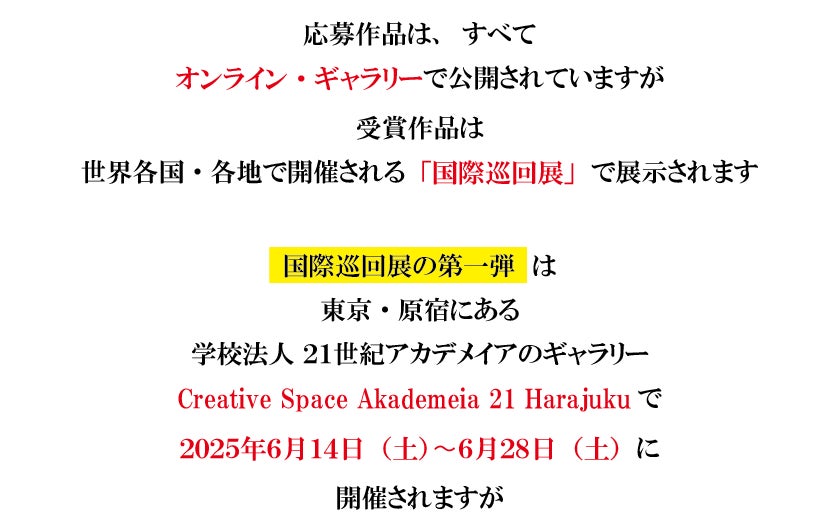 21世紀アカデメイア(学長:田坂広志)のCreative Space Akademeia 21 Harajuku(東京・原宿)で、6月14日〜28日、全ての受賞作展示