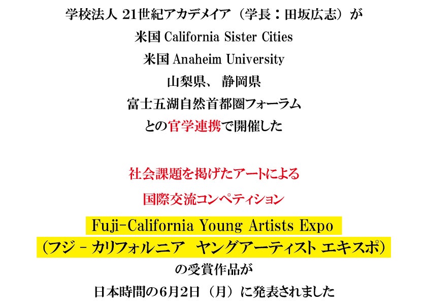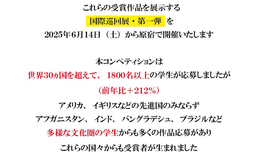 世界30ヵ国1800名の学生が応募した「社会課題×アートの国際コンペ Fuji-California Young Artists Expo 2025」 の受賞作発表! 6月14日から国際巡回展開催!