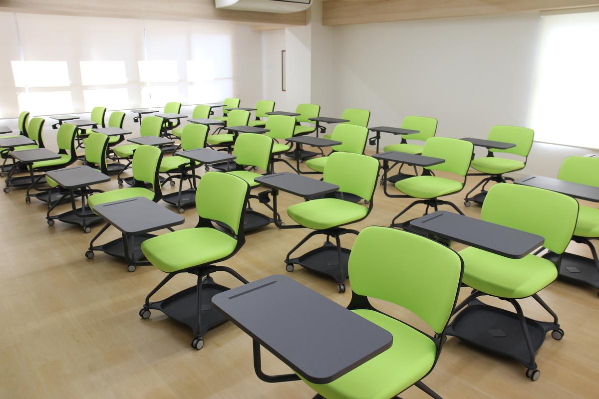 語学を学ぶ学科だからこそ、可動式のイスで、